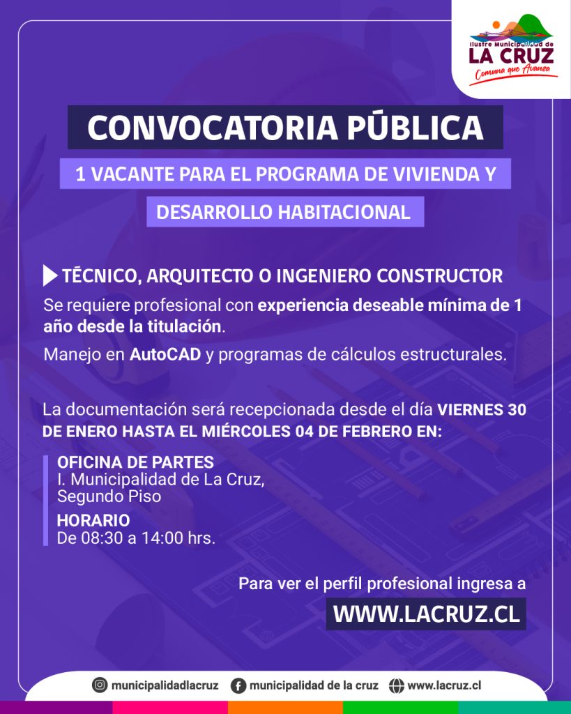 Convocatoria pública: Profesional de área técnica, Arquitecto o Ingeniero Constructor