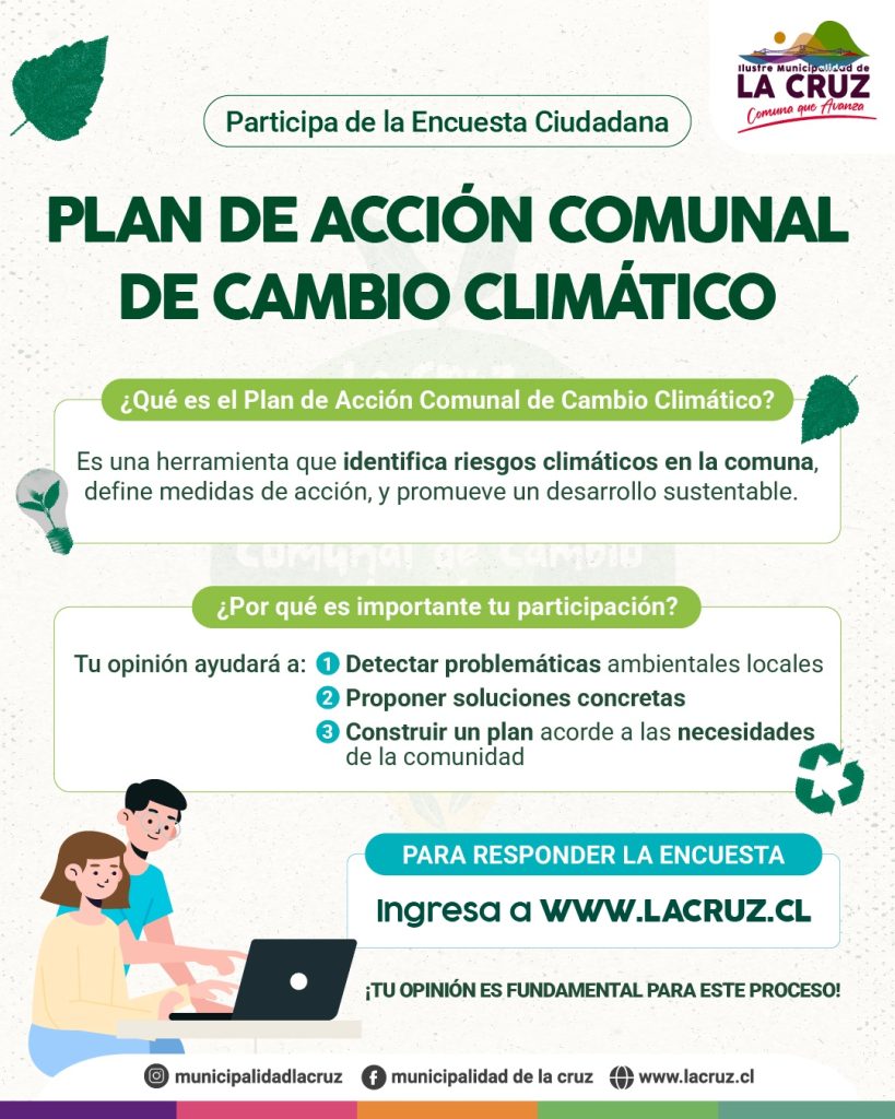 Vecinas y vecinos, les invitamos a ser parte de la elaboración del Plan de Acción Comunal de Cambio Climático, impulsado por nuestra Unidad de Medio Ambiente